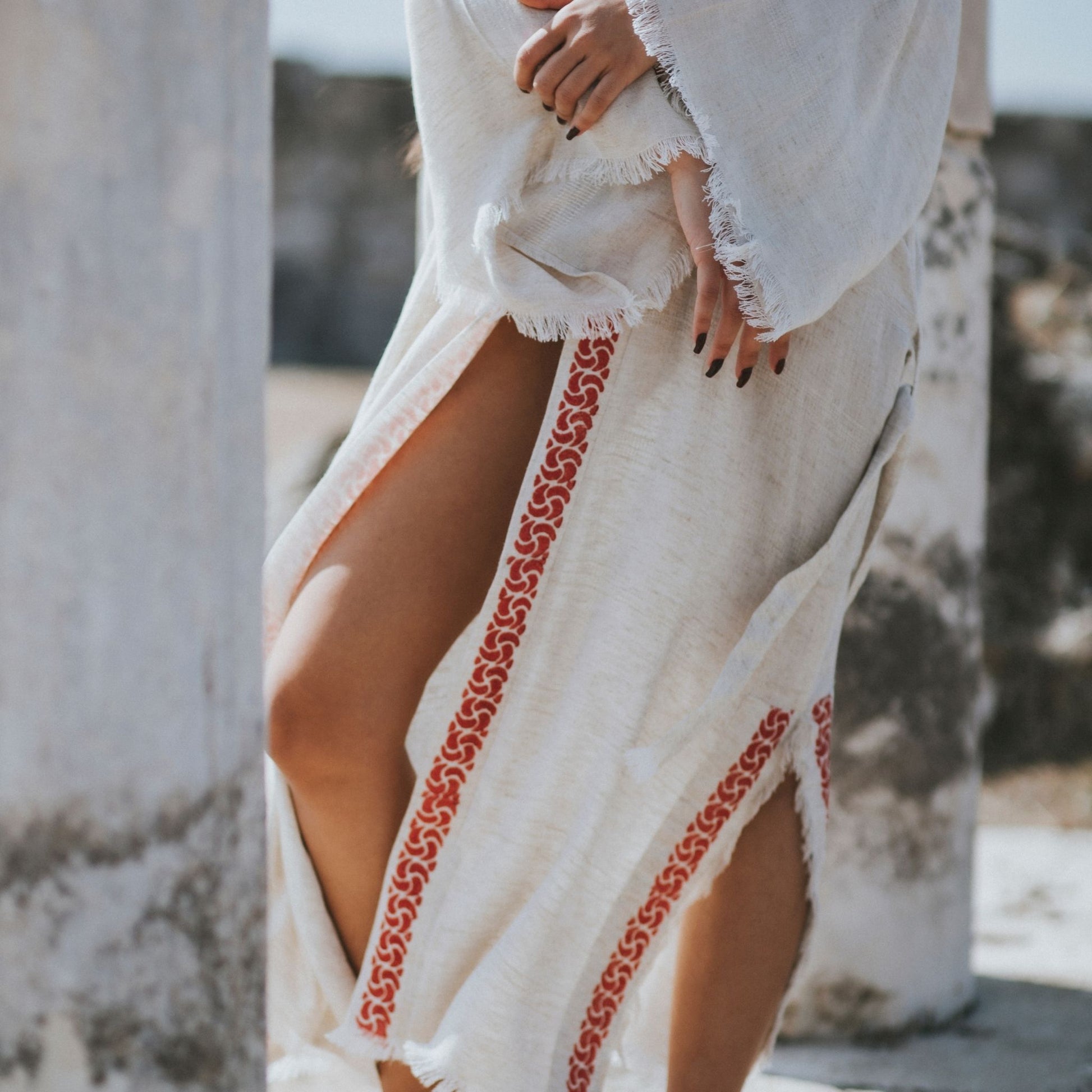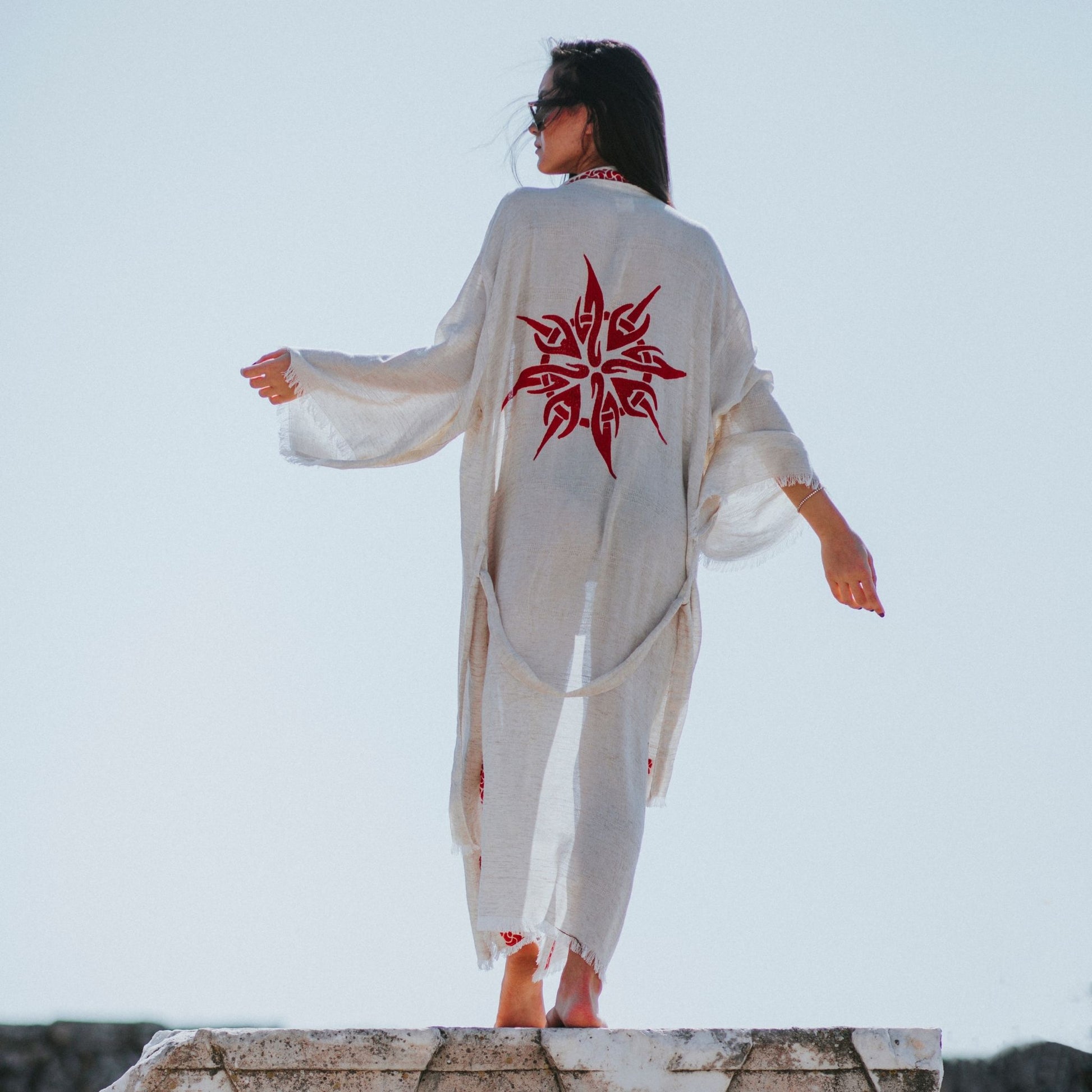 Ce kimono artisanal en tissu naturel est parfait pour les vacances, les journées à la plage ou les moments de détente. Sa matière légère et respirante offre un confort absolu, idéal pour une tenue élégante et décontractée toute l’année.