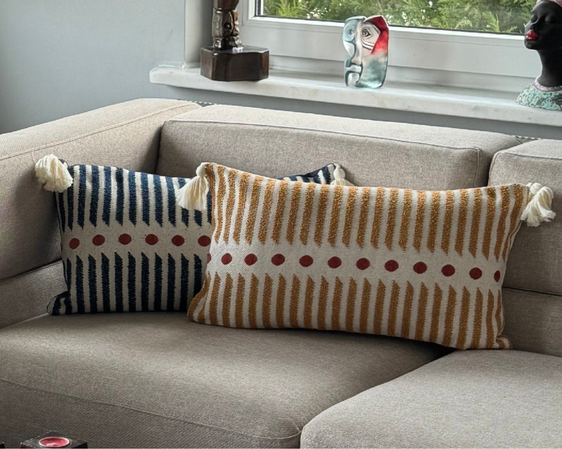 Point la housse de coussin est un véritable coup de cœur pour son caractère exceptionnel et son style incomparable. Réalisé dans un jacquard de haute qualité, chaque détail de son tissage complexe a été méticuleusement conçu pour capturer l'attention. Le design se distingue par un effet de relief impressionnant qui donne vie à son motif graphique, offrant une profondeur et une incroyable texture visuelle. C'est une déclaration de style, un favori parmi les connaisseurs de design, promis à devenir un incontournable dans votre collection de décoration d'intérieur. Production en série limitée Chaque housse est confectionnée en quantité limitée, dans notre atelier en Turquie. Ce choix de production raisonnée garantit l'authenticité de chaque pièce et reflète notre engagement pour une fabrication soignée, loin des productions de masse.