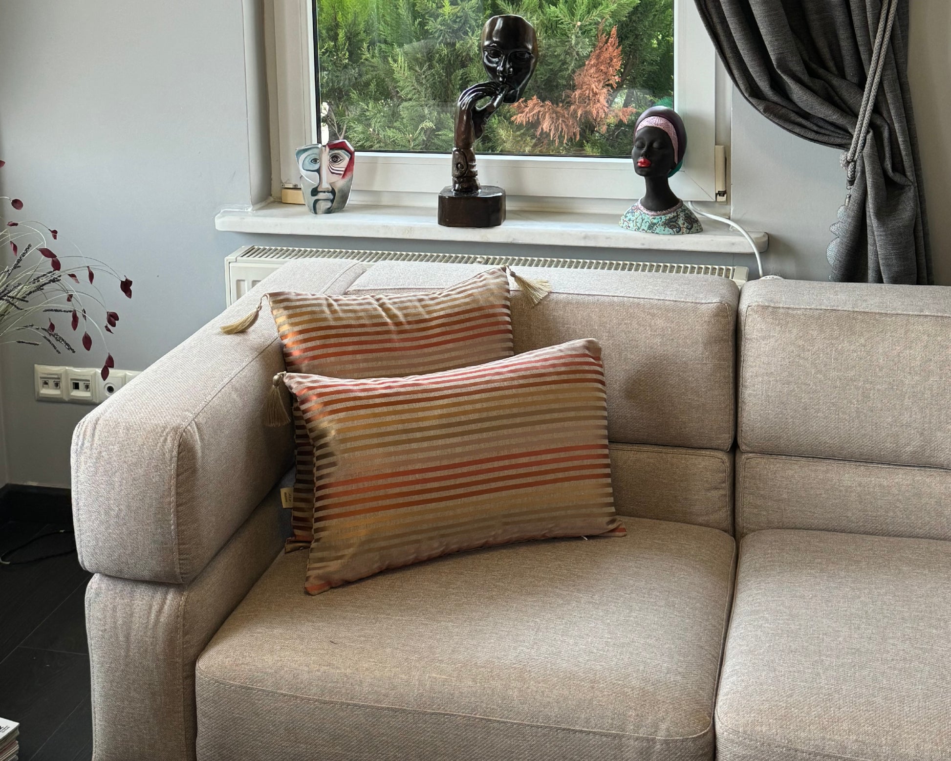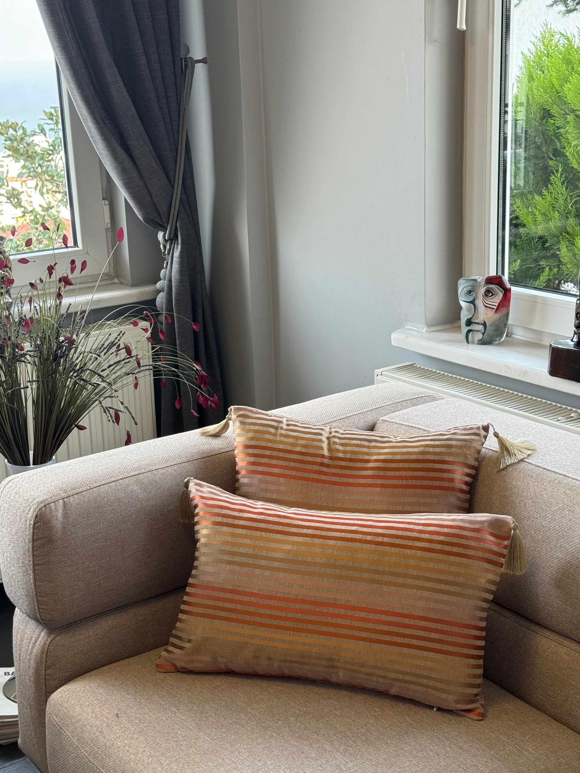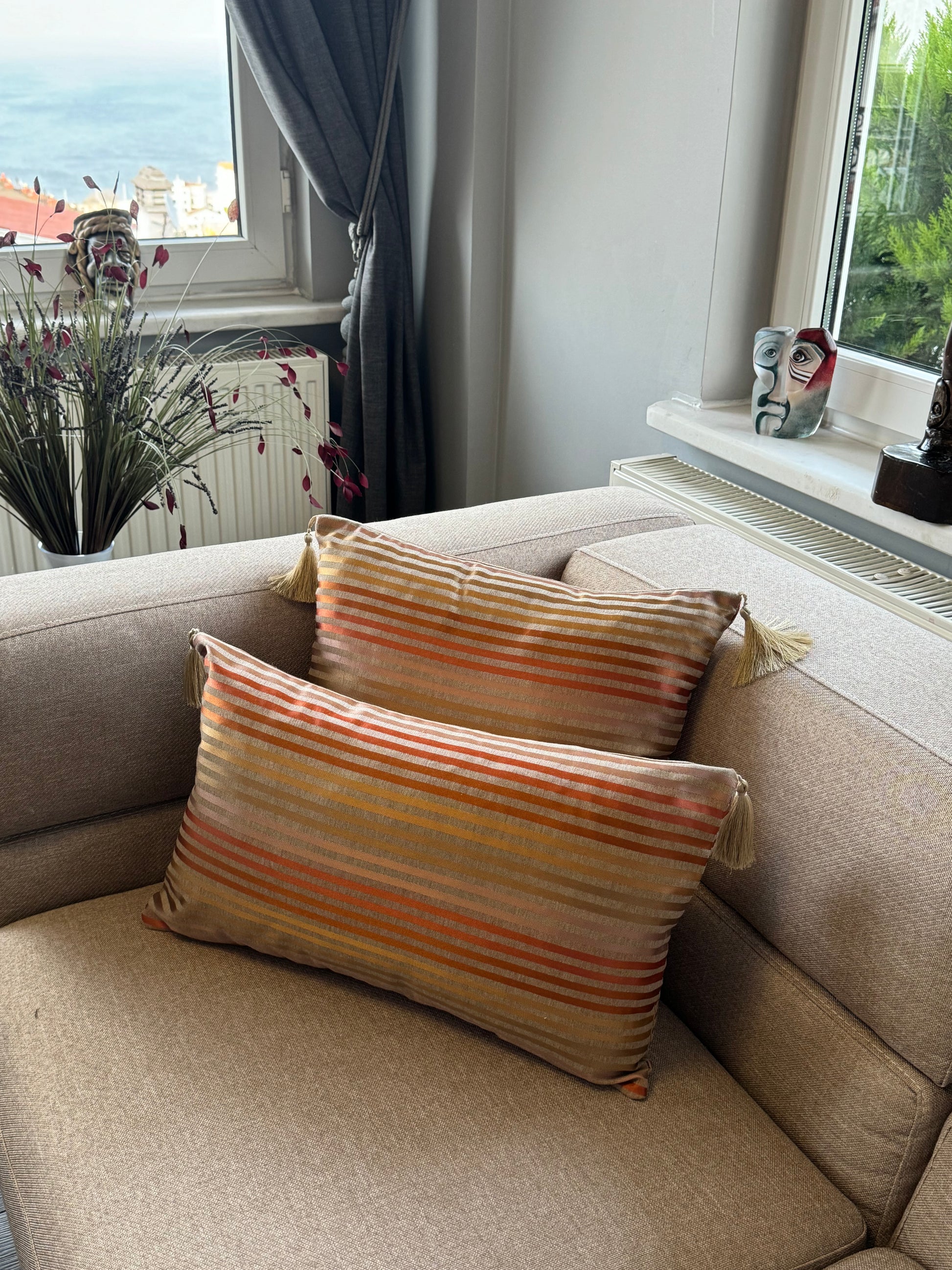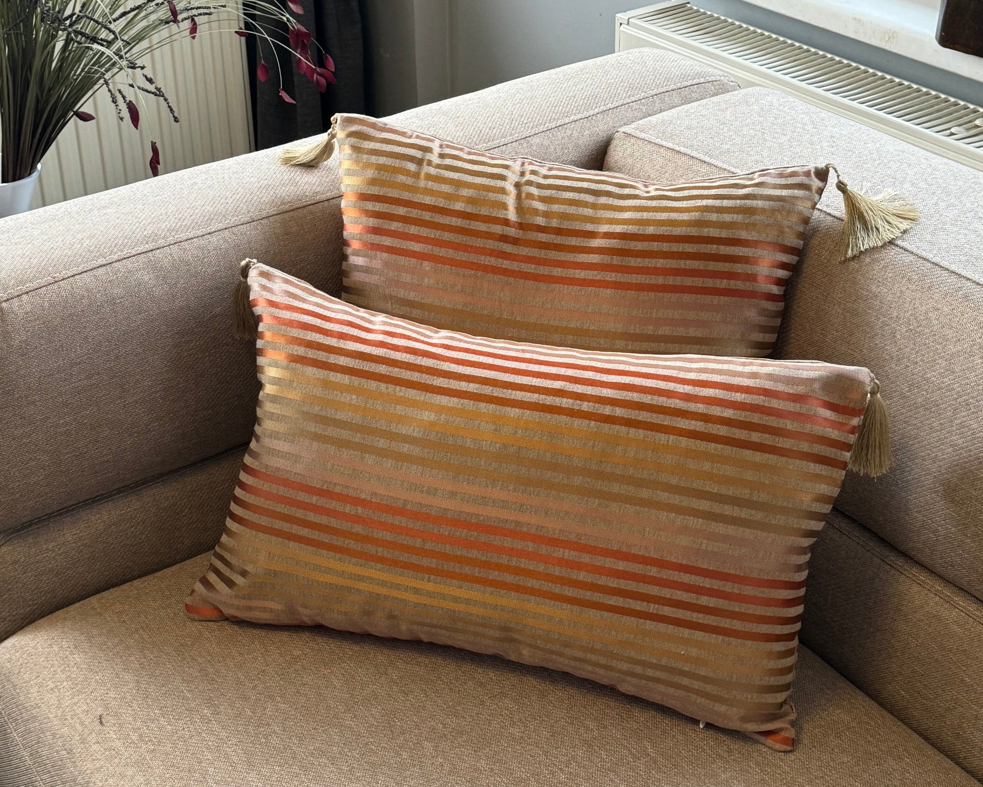 Housse de Coussin ELLA en Satin Rayé – Finition Brillante & Élégance Moderne