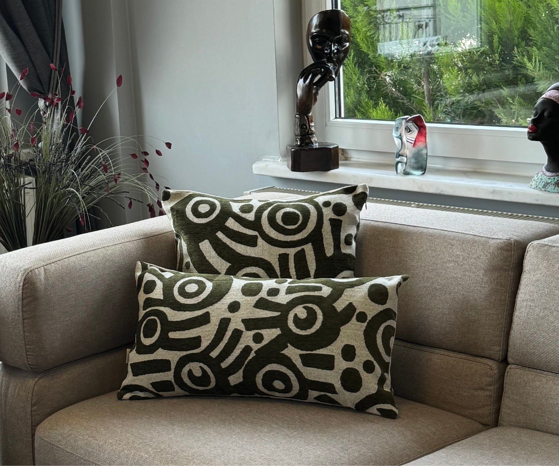 Les teintes ivoire et vert , subtilement mélangées, apportent chaleur et élégance à votre décoration, que ce soit dans un salon contemporain ou une ambiance bohème chic.