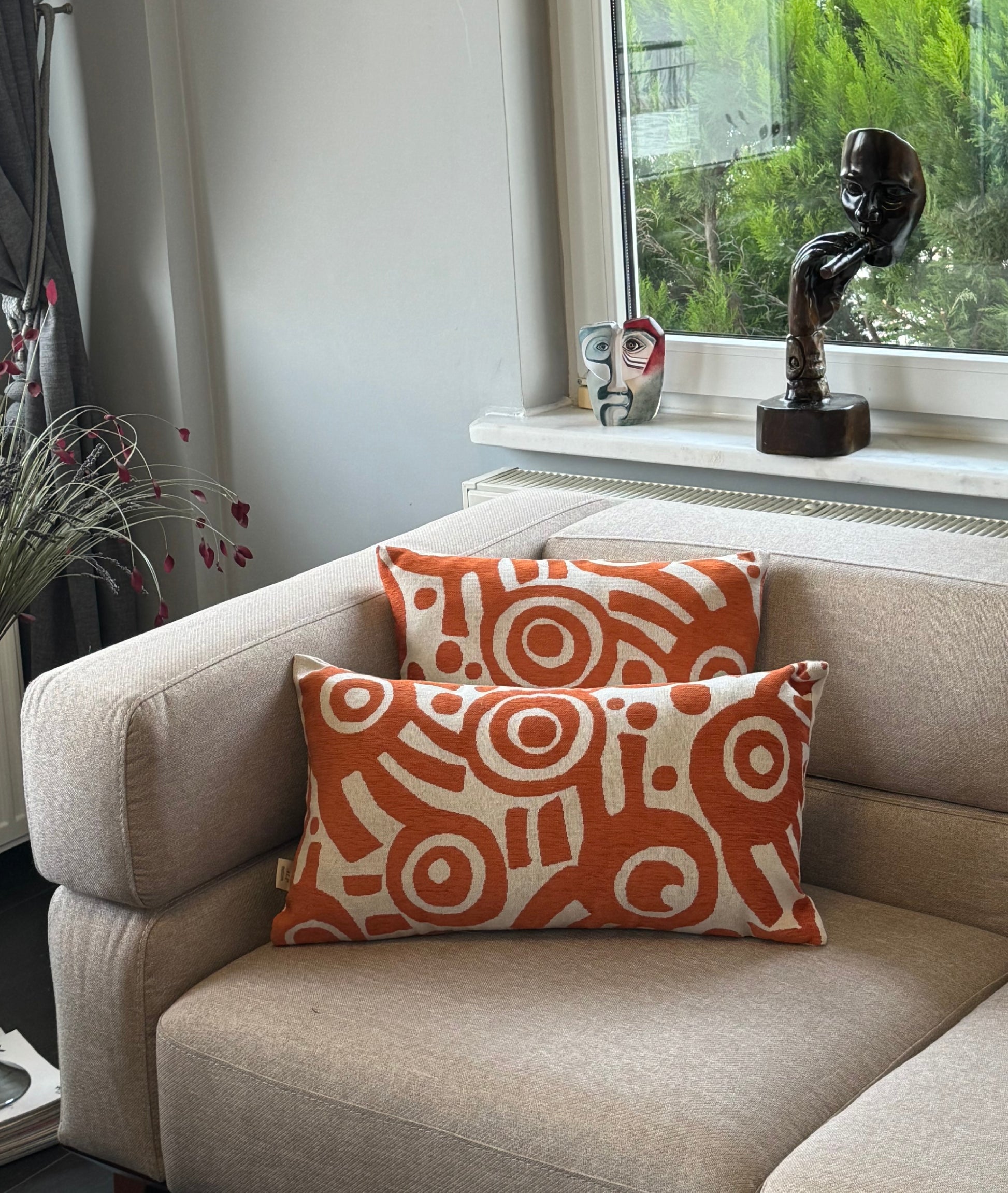 The ivory and orange tones blend harmoniously to bring warmth and elegance to your décor, whether in a contemporary living room or a bohemian-chic setting.