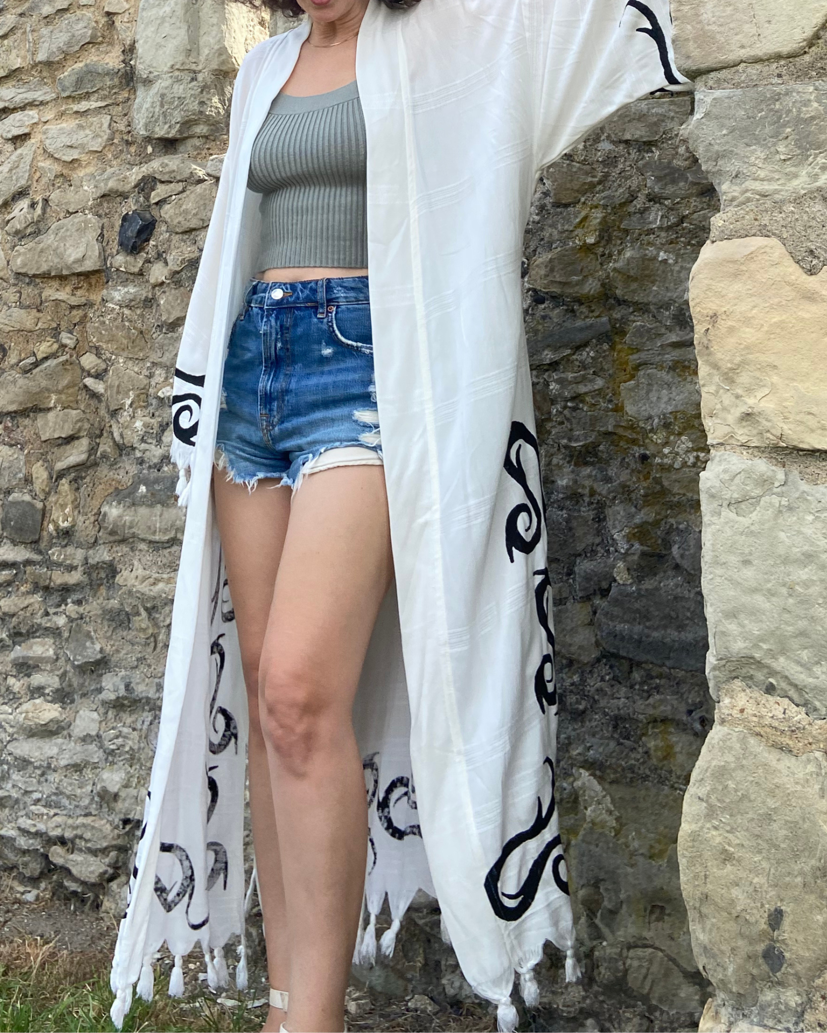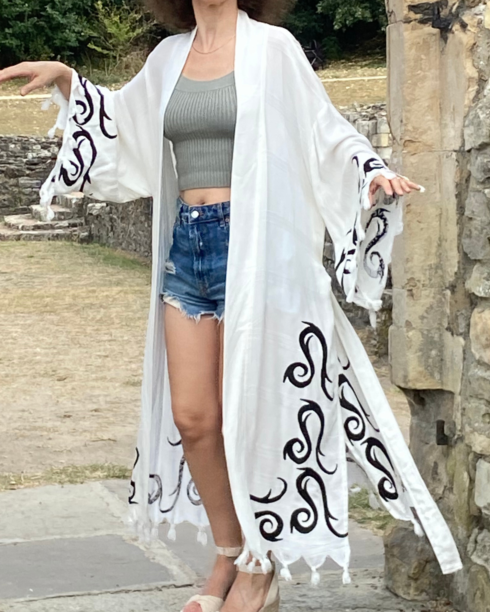 Medusa – Kimono Femme en Coton & Bambou  Écru, Élégance Artisanale