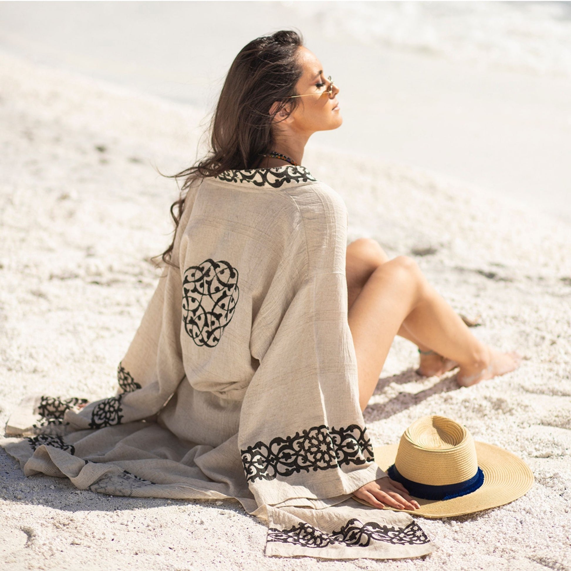 Offrez-vous une touche de raffinement décontracté avec ce kimono artisanal, conçu pour celles qui recherchent confort, esthétique et mode écoresponsable.