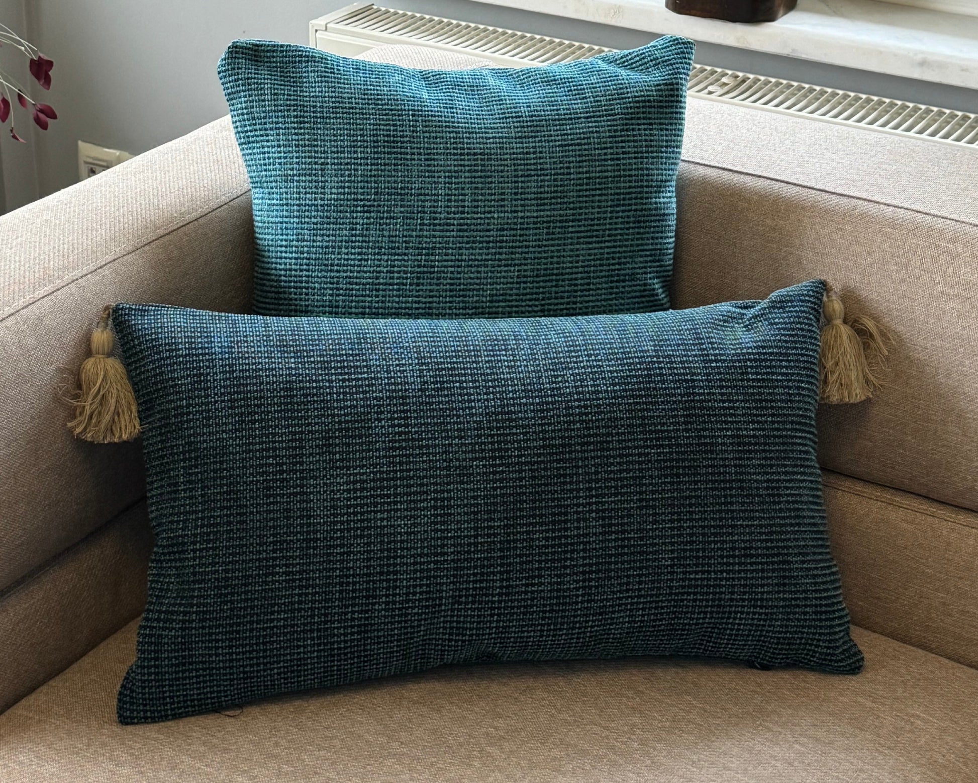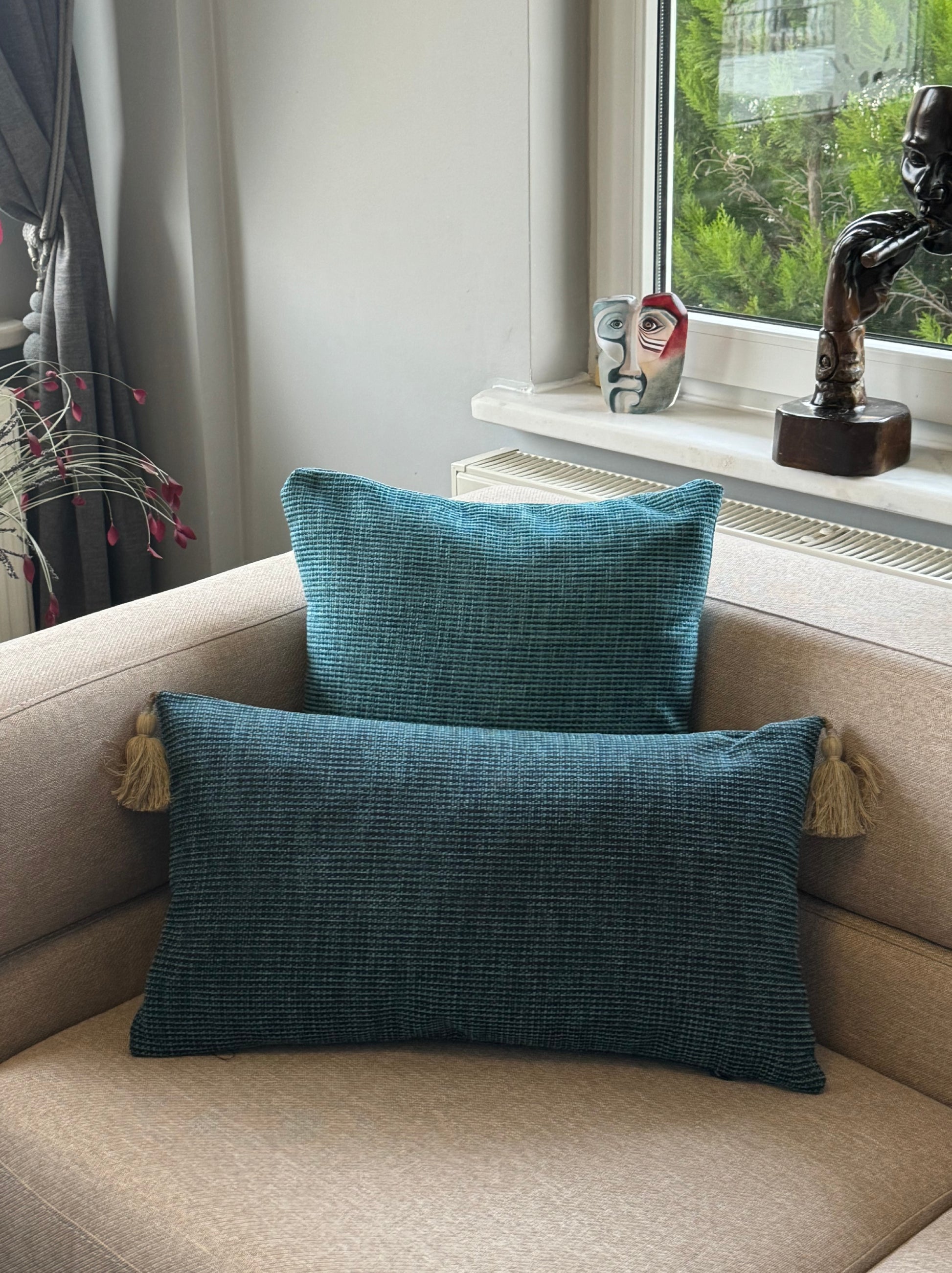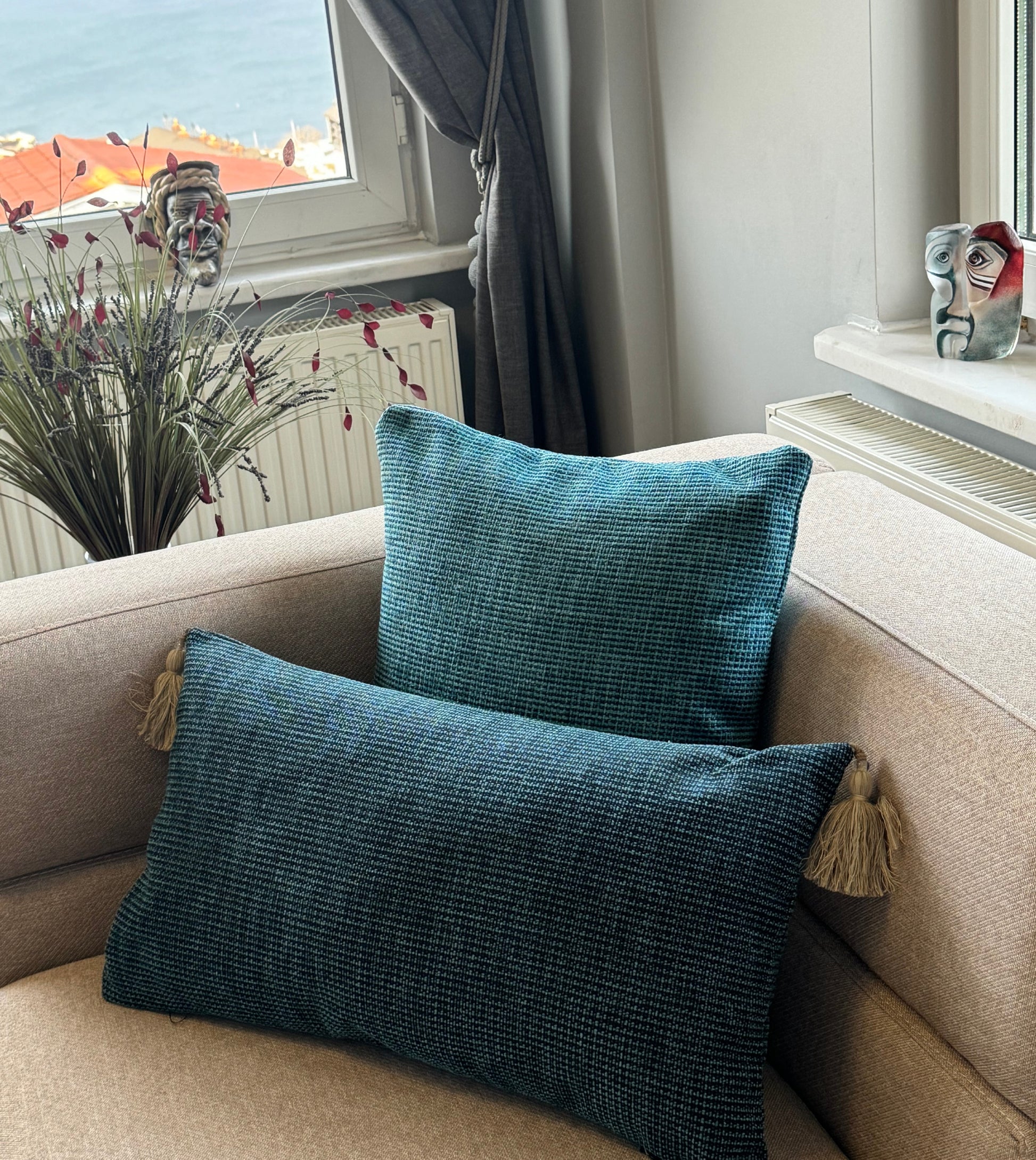 Disponible en format carré (45x45 cm) ou rectangulaire (35x55 cm), avec ou sans pompons, chaque pièce est méticuleusement confectionnée en série limitée dans notre atelier turc.