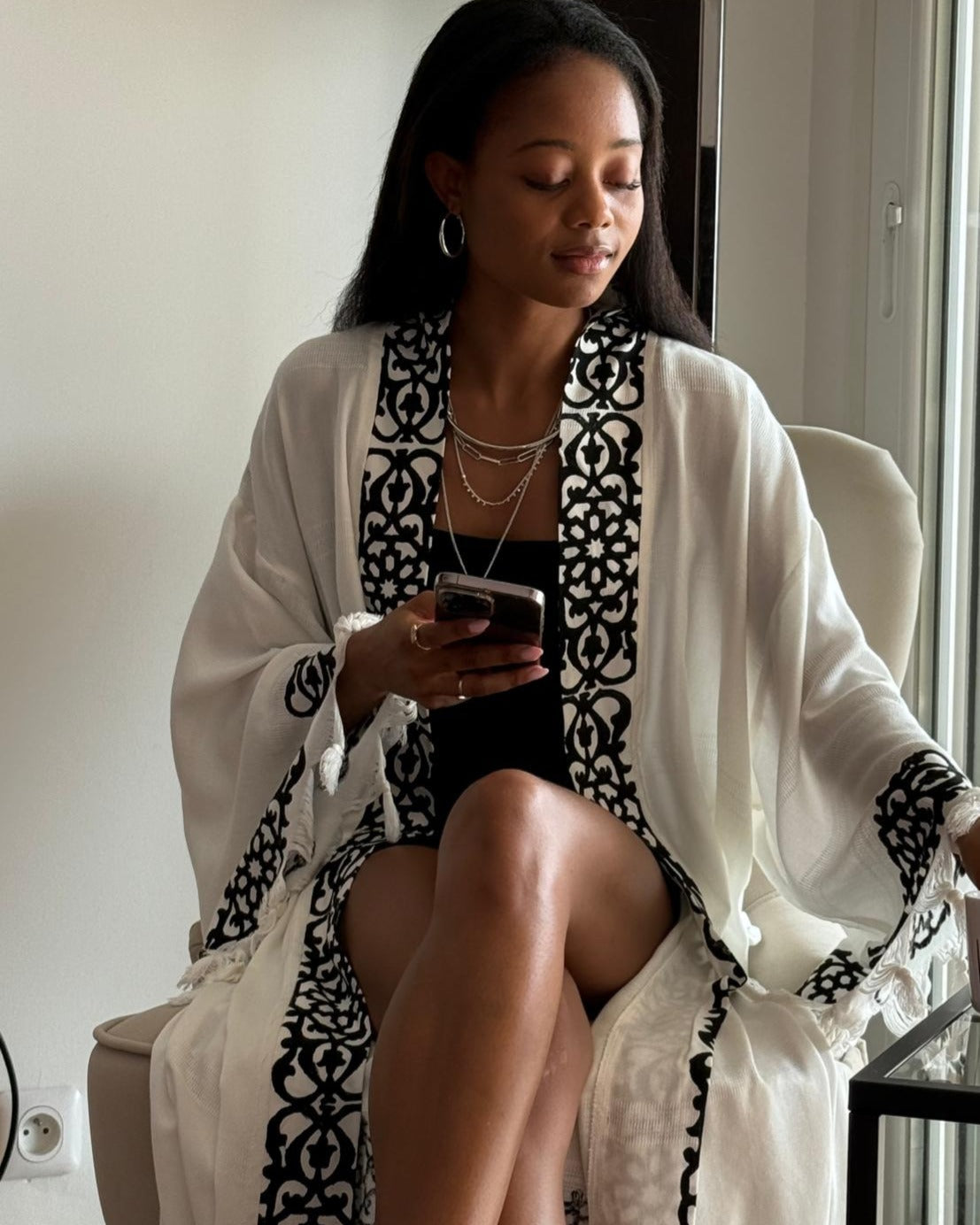 Chaque Kimoso est imprimé à la main, sans colorants artificiels, juste des teintes naturelles et authentiques. Fabriqué en coton de qualité supérieure, il est doux pour la peau, respirant et agréable à porter. Que vous l’utilisiez comme peignoir, tenue d’intérieur ou pièce de superposition, il s’adapte à votre quotidien avec élégance.