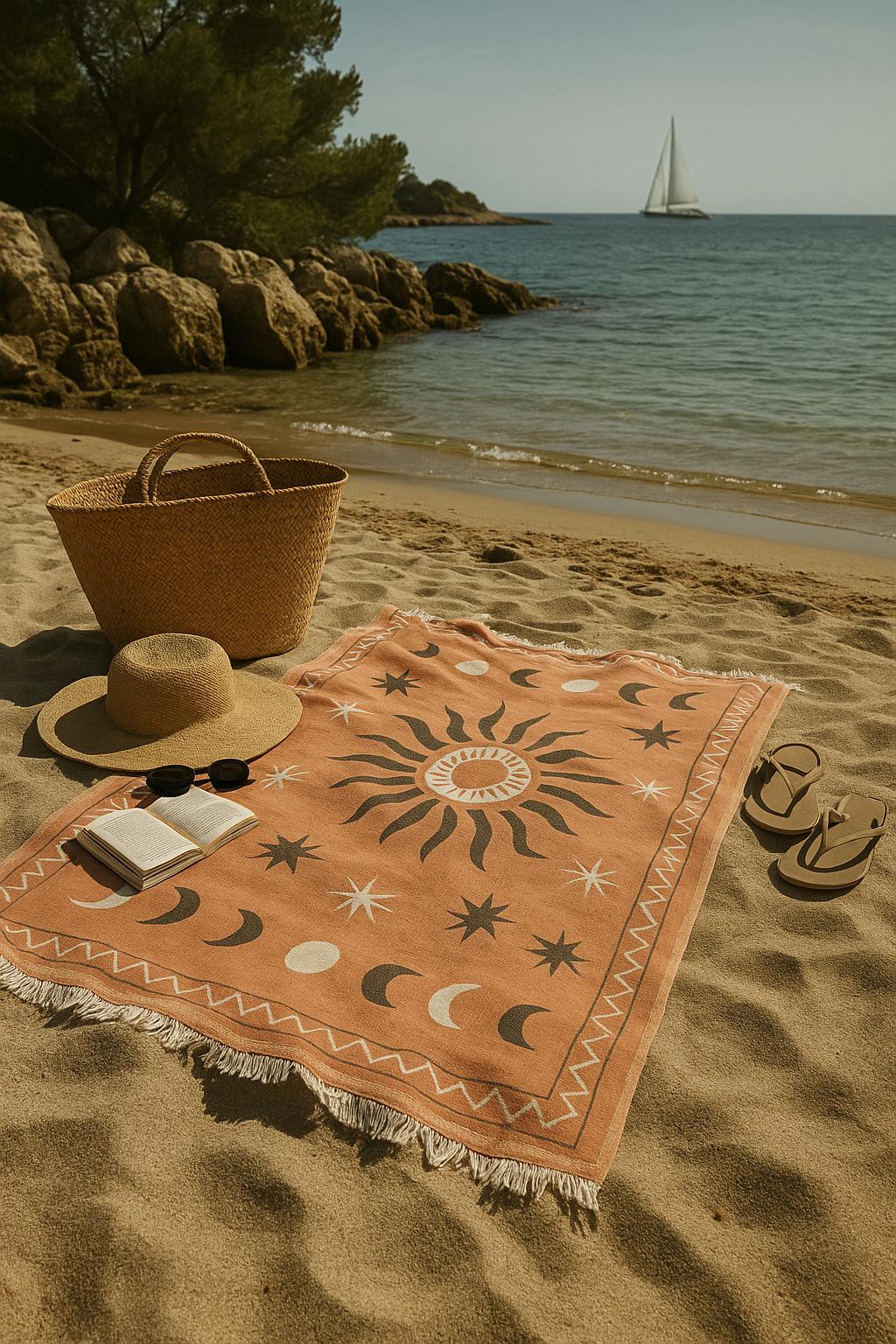 SOLEİLE Serviette de plage élégante, en coton, et stylée